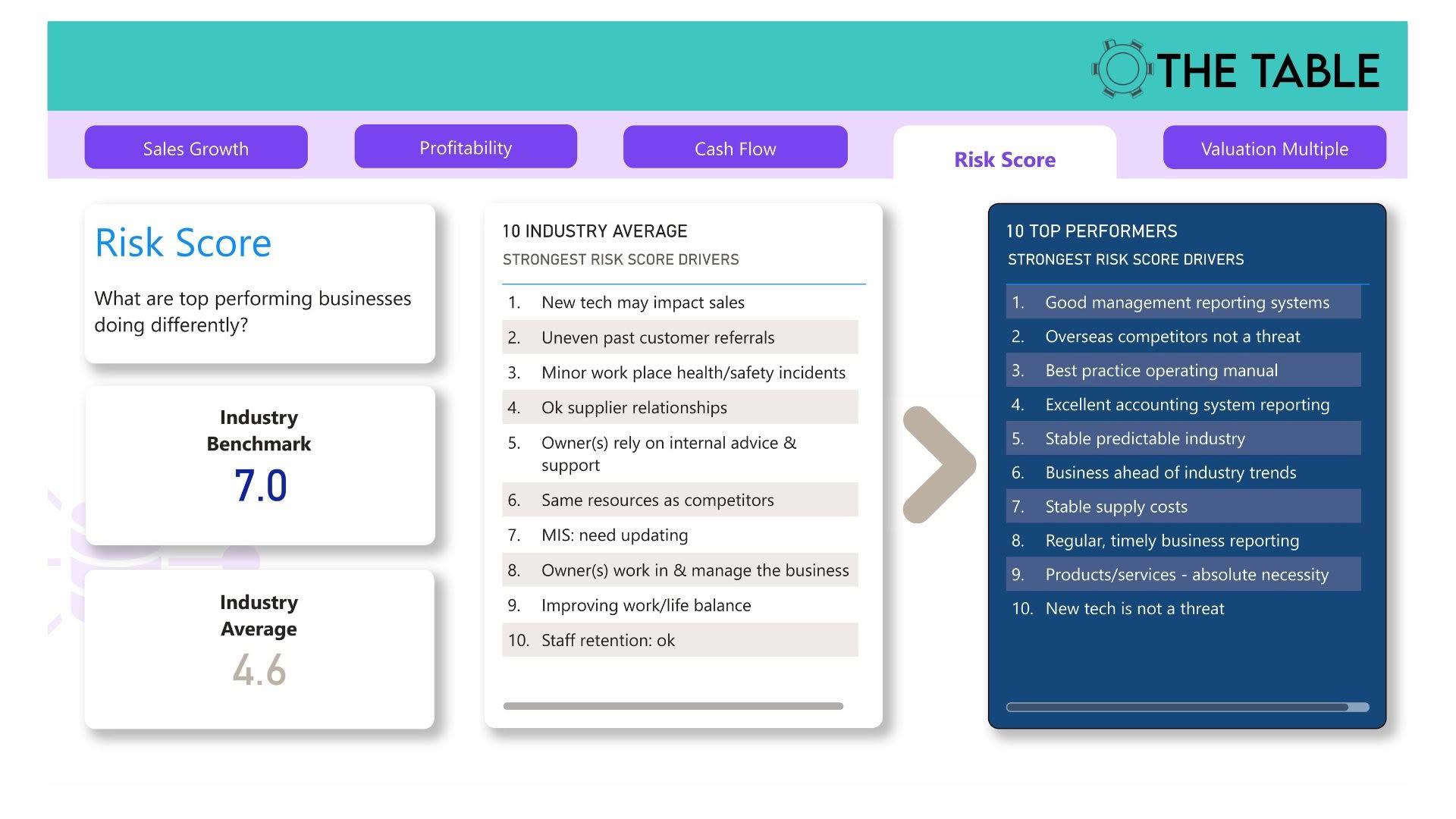 Get access to real data, insights, and expert guidance that help you make confident business decisions. From risk surveys and benchmarking to peer-to-peer support, The Table gives you the clarity and accountability to strengthen cashflow, profits, and purpose - all in one place.